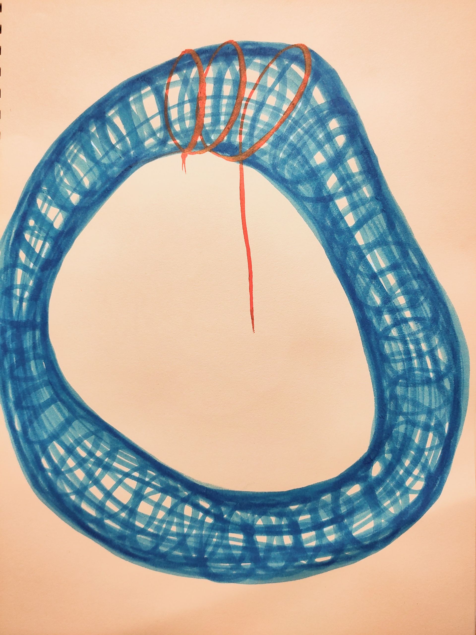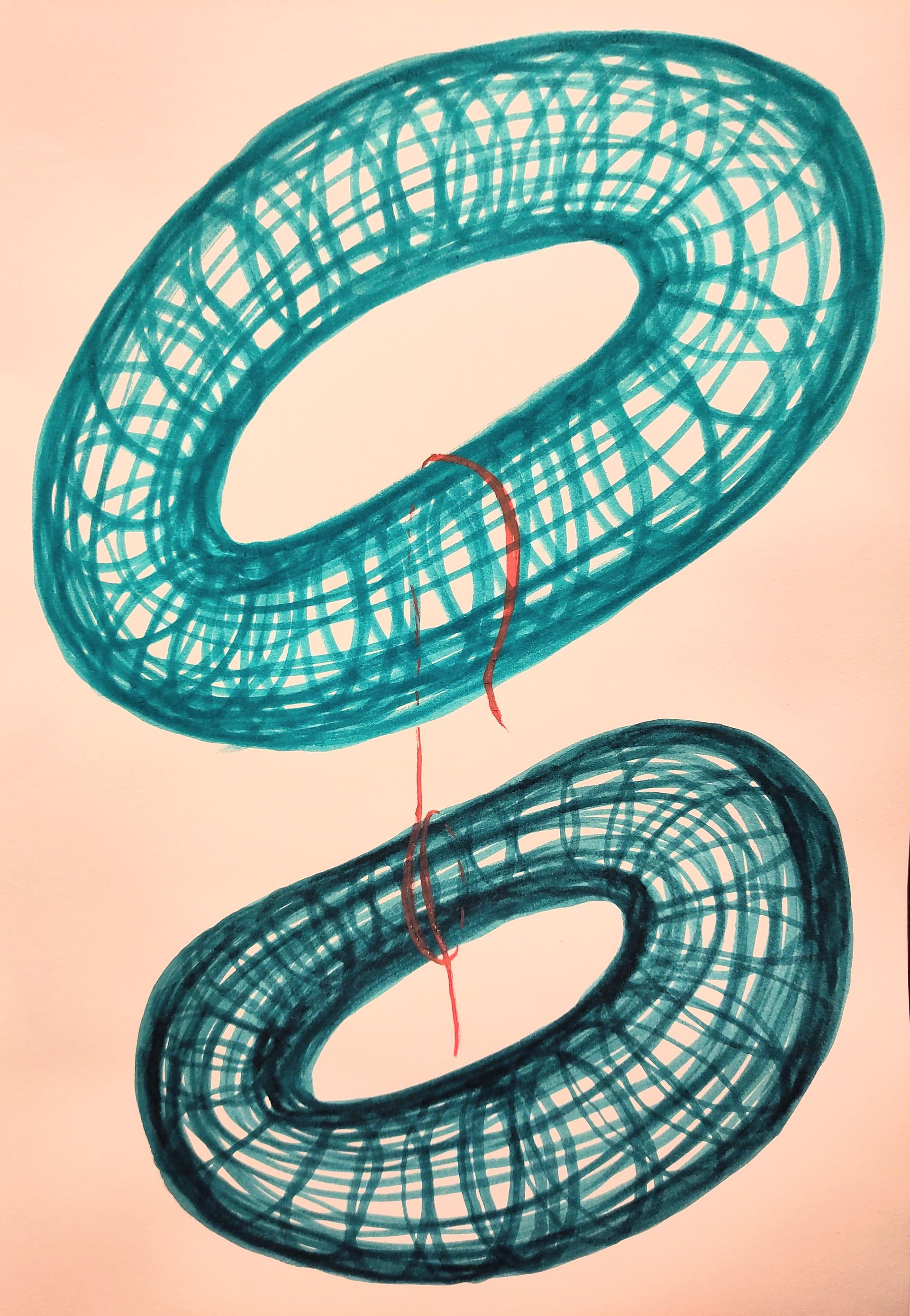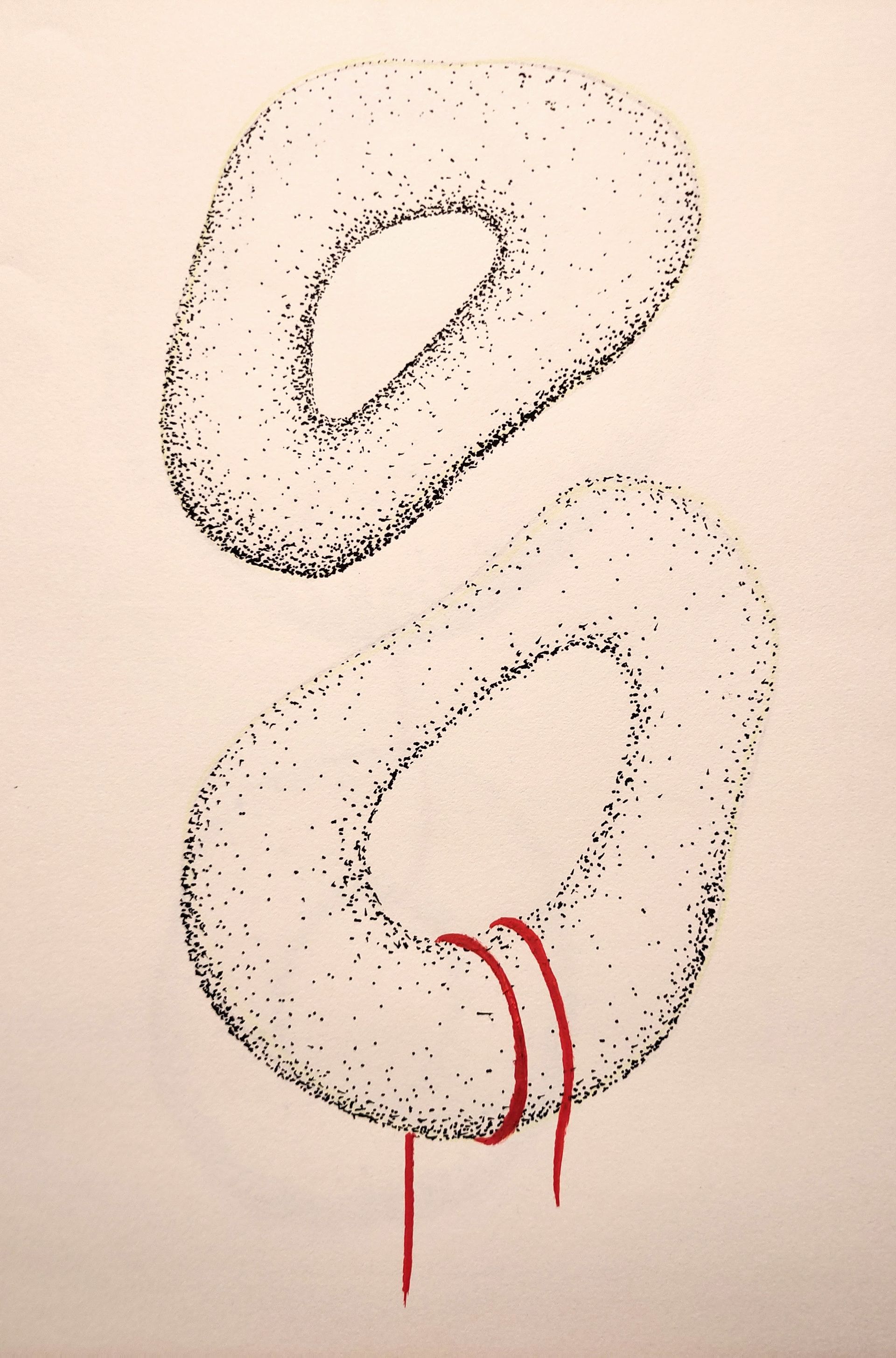 All of the sketches below were made on A3 paper, with varying markers. I was focusing on which shapes are the most pleasing to look at, and the role of the red string.