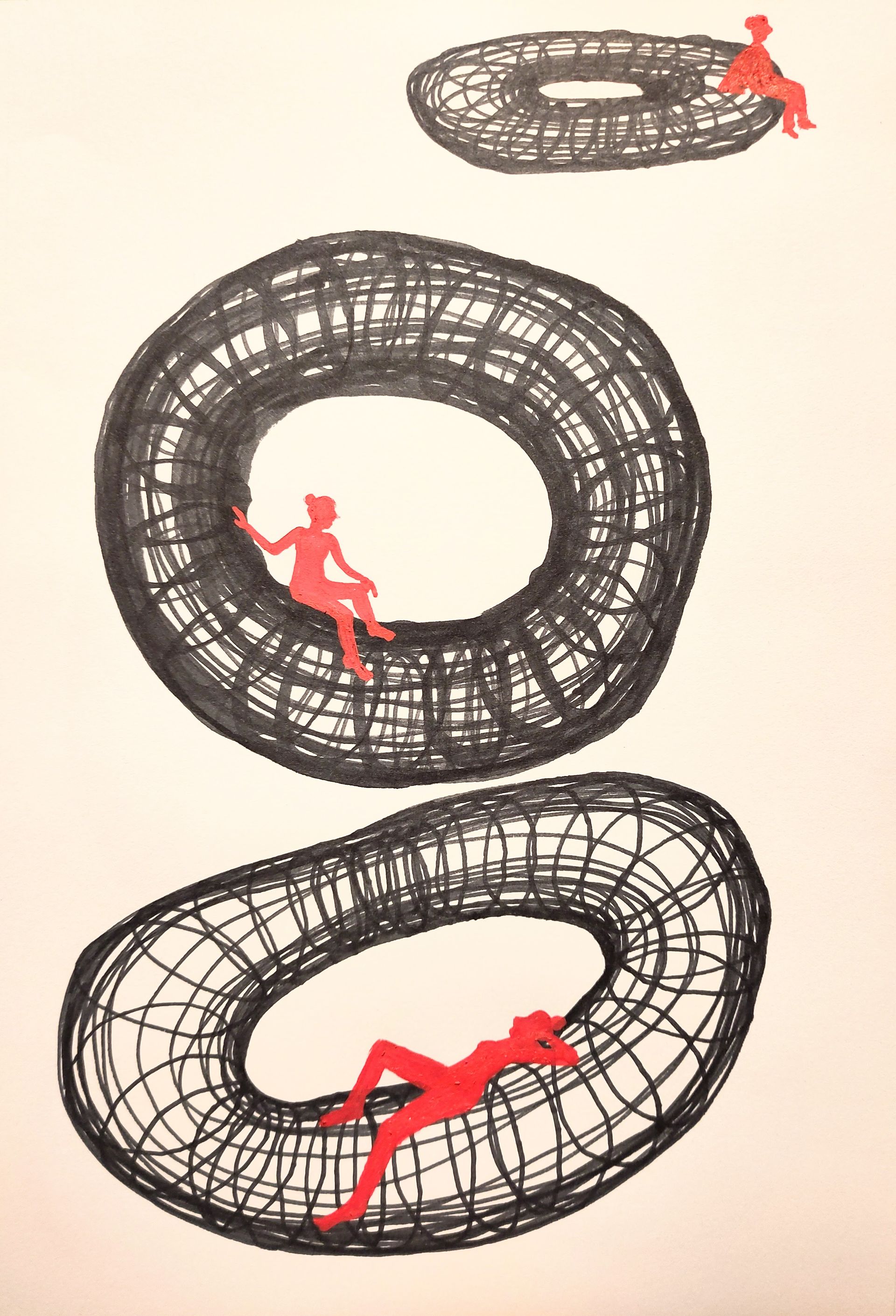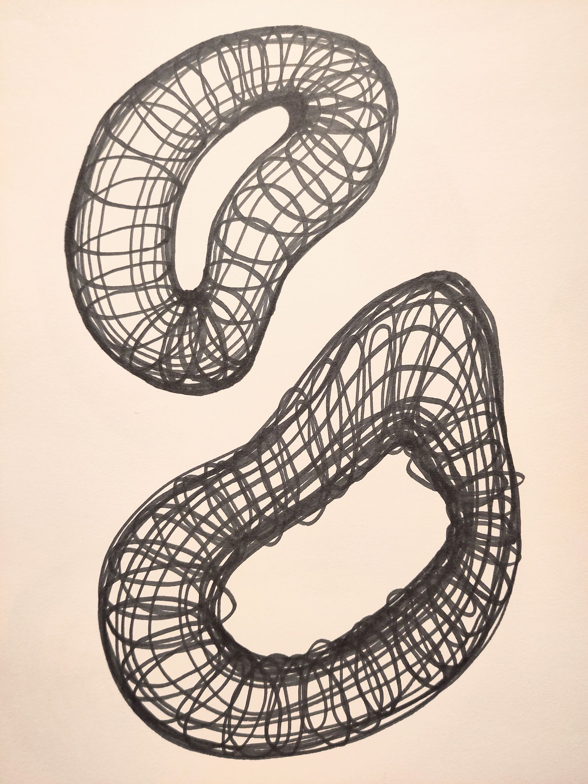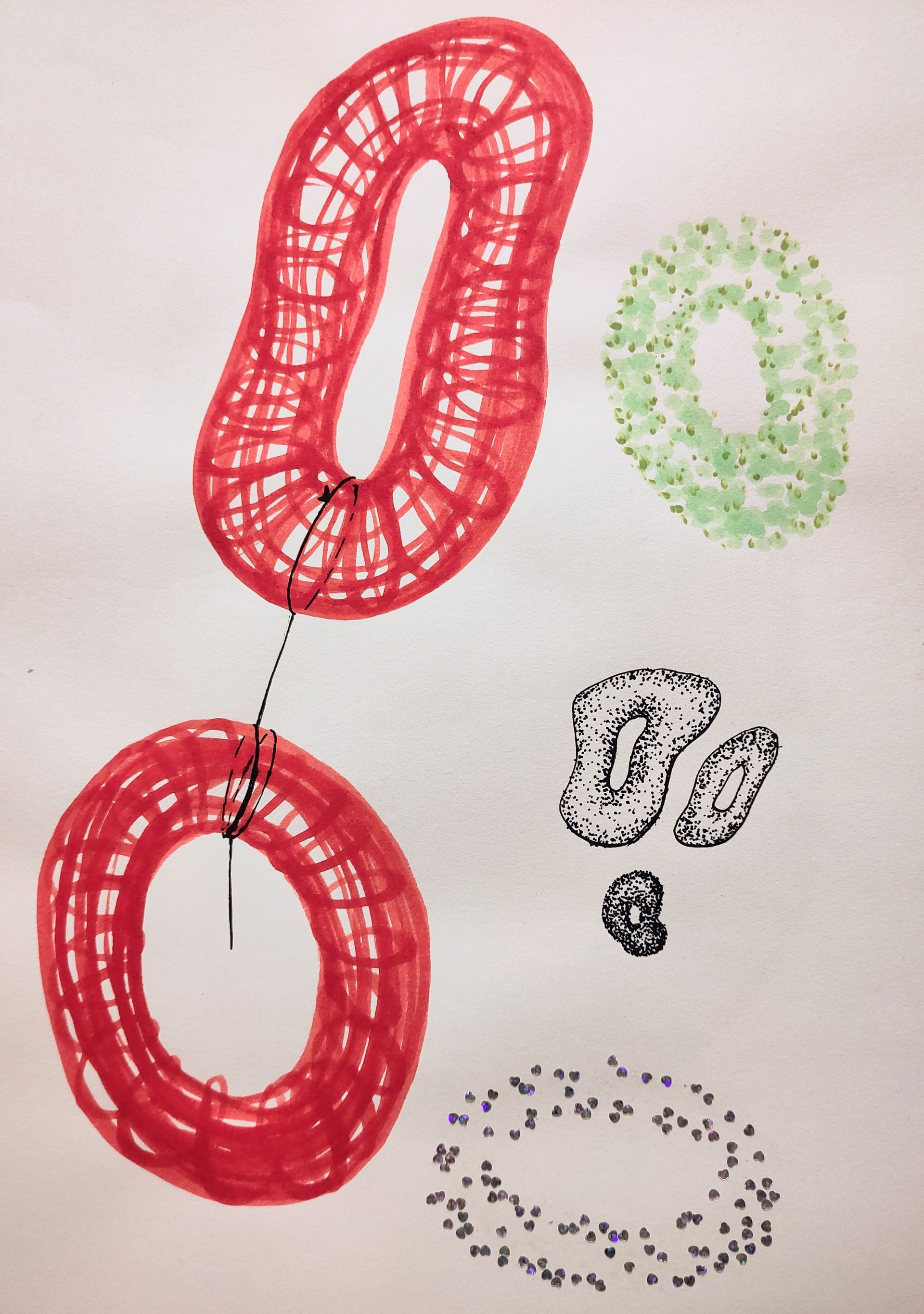 All of the sketches below were made on A3 paper, with varying markers. I was focusing on which shapes are the most pleasing to look at, and the role of the red string.